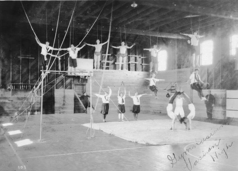 Norman Edson photograph of aerialists at Vashon High School, 1920s